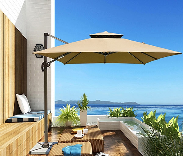Trụ nằm ở giữa, kết cấu chắc chắn, phù hợp cho sân vườn, hồ bơi, khu du lịch, bãi biển.